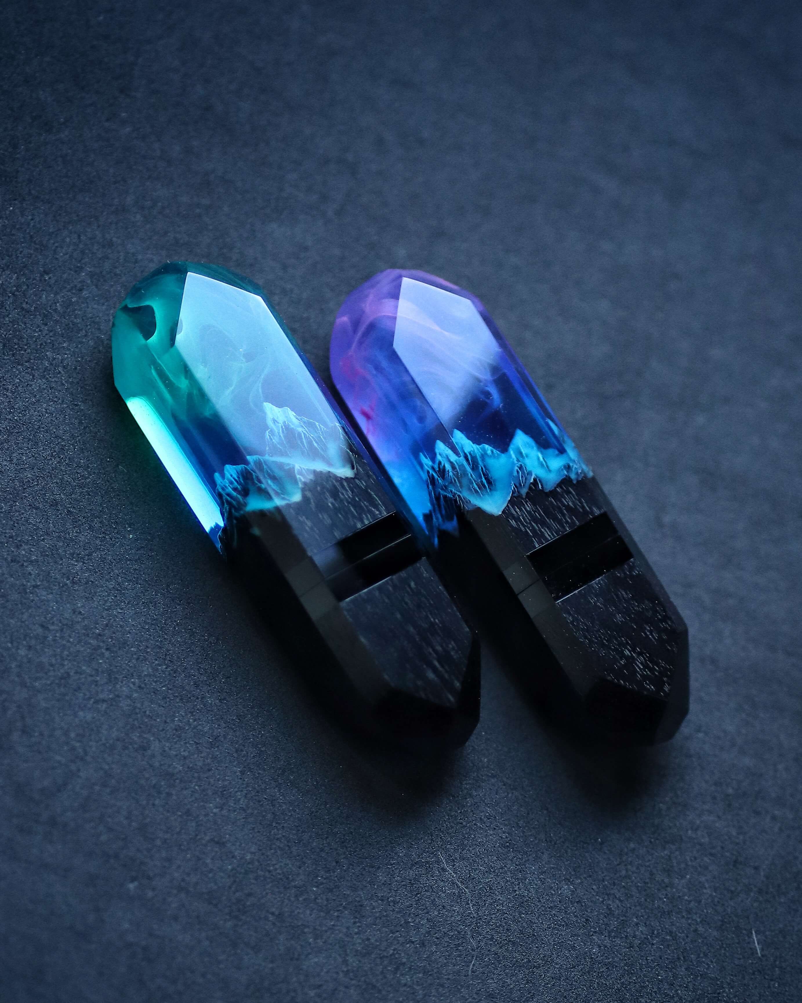 Handmade epoxy resin and wood Nightfall Mountain USB