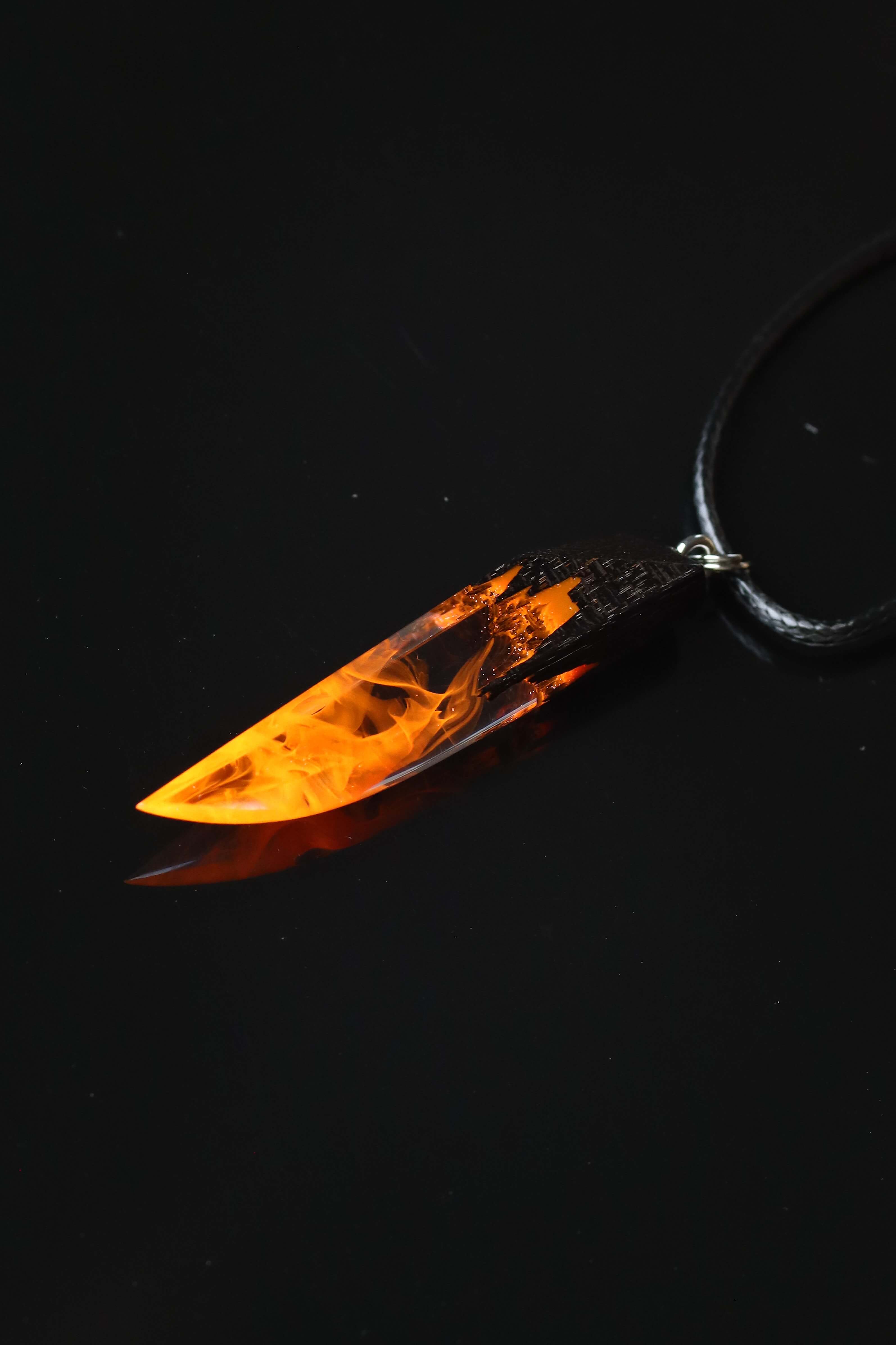 Handmade fang-shaped pendant from black hornbeam wood and resin.